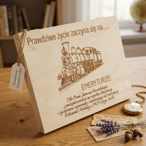 W zestawie otrzymujesz: 1× skrzynkę oraz 1× grawer. Dla efektu „gotowe na prezent” polecamy dobrać wypełniacz. Drewno jest materiałem naturalnym – możliwe są delikatne różnice w odcieniu i usłojeniu.